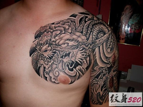 霸气过肩龙半甲纹身