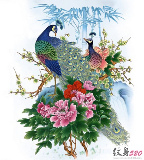 华美的孔雀纹身手稿欣赏