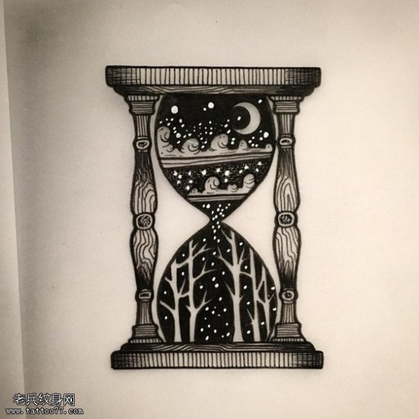 手稿的星空沙漏纹身图案