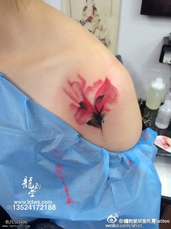 女生肩花纹身_15张女性双肩对称的肩花纹身图案作品图片