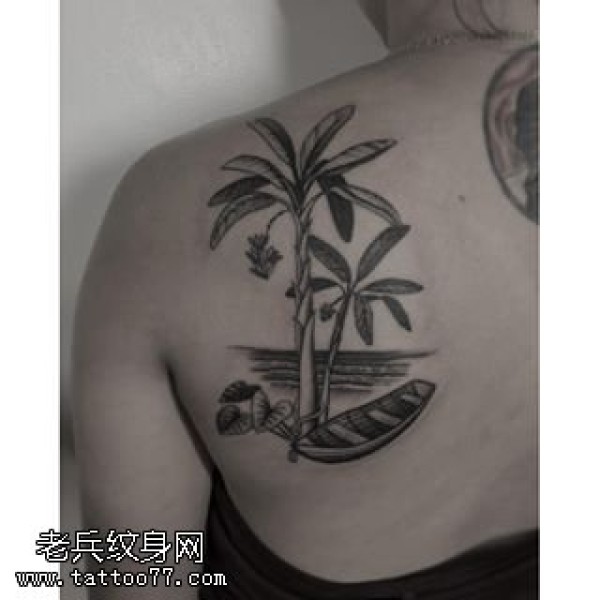 肩部两颗椰子树纹身图案