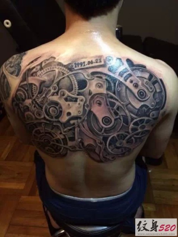 男士背部霸气机械纹身