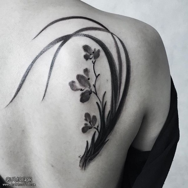 女生肩花纹身_15张女性双肩对称的肩花纹身图案作品图片