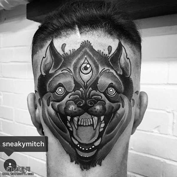 男生头部帅气时尚的狼头纹身图片_头部纹身图案大全_纹身图吧