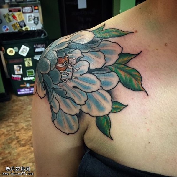 肩部的富贵牡丹纹身图案