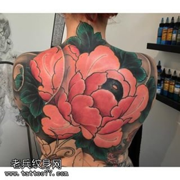 背部的一枝大牡丹纹身图案
