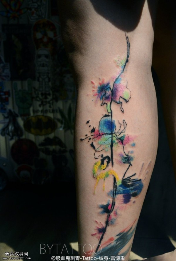 小腿水彩的图腾纹身图案