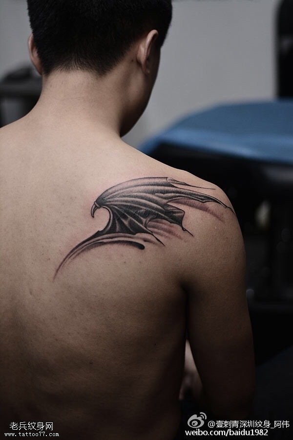 肩部的蝙蝠爪纹身图案