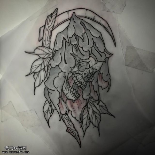 手稿线条镰刀骷髅纹身图案