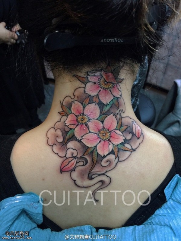 后颈部纹身小图--9张女生脖子后颈处的简约纹身图案