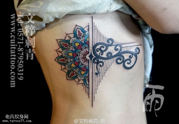 女性腰部莲花花纹刺青_腰部纹身图案大全_纹身图吧