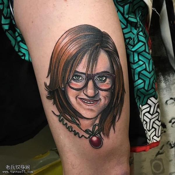 清纯女孩腿上可爱肖像纹身图片_肖像纹身图案大全_纹身图吧