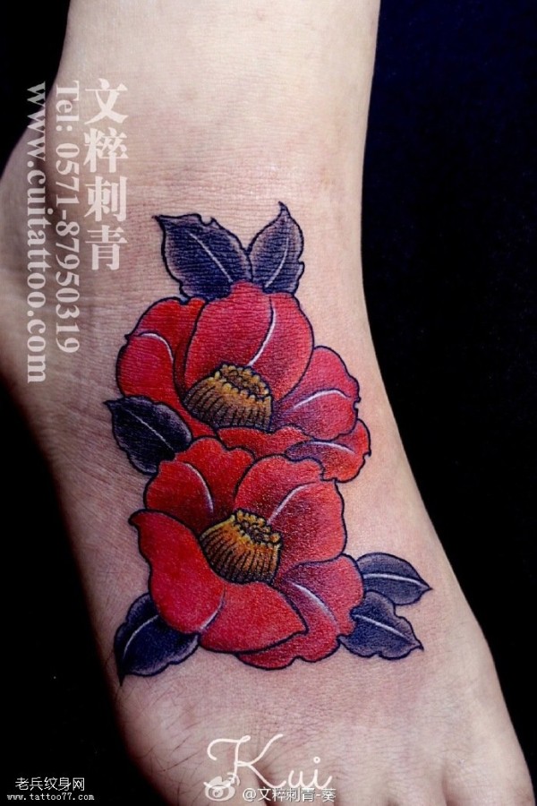 清新小桃花脚踝纹身_脚部纹身图案大全_纹身图吧