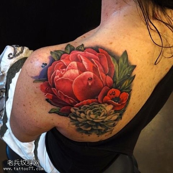 女生肩花纹身_15张女性双肩对称的肩花纹身图案作品图片