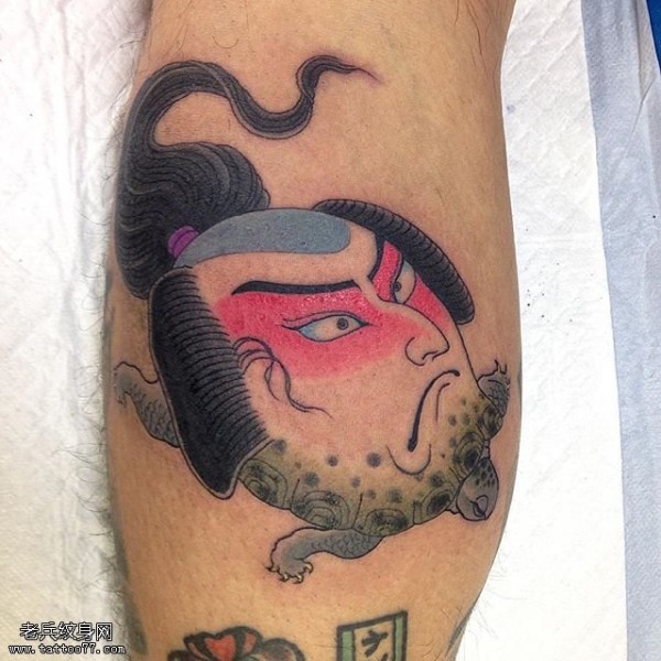 小腿上日本武藏纹身图案