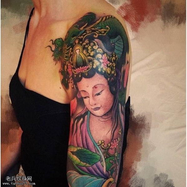 女生肩花纹身_15张女性双肩对称的肩花纹身图案作品图片