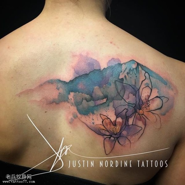 女生肩花纹身_15张女性双肩对称的肩花纹身图案作品图片