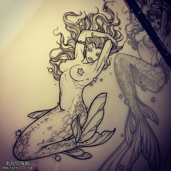 手稿经典美人鱼纹身图案