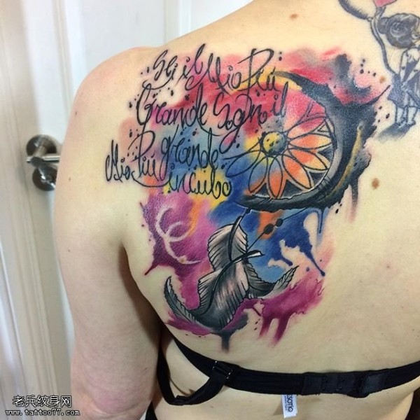 女生肩花纹身_15张女性双肩对称的肩花纹身图案作品图片