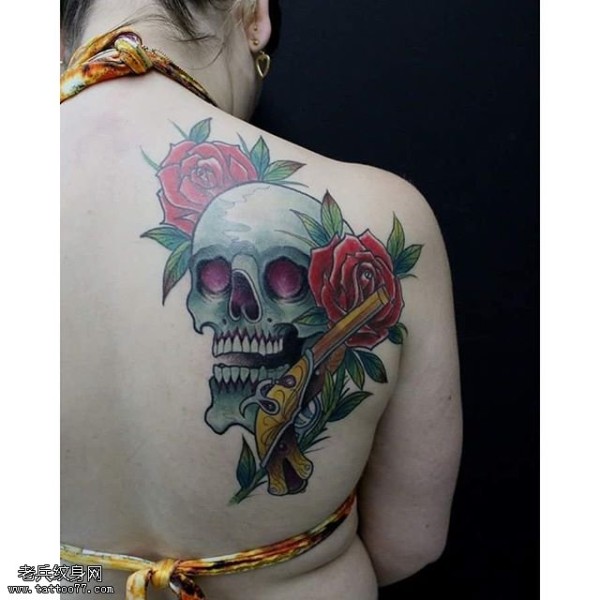 女生肩花纹身_15张女性双肩对称的肩花纹身图案作品图片
