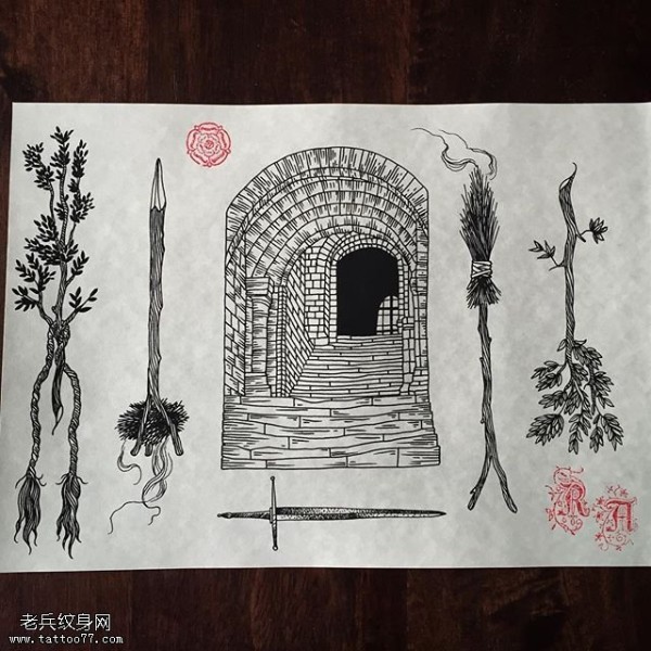 手稿通往天天的隧道纹身图案