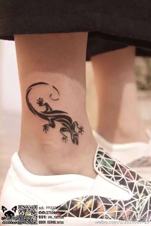 脚腕上的壁虎纹身图案