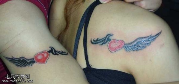 情侣爱心翅膀摄影纹身图案
