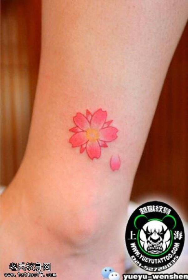 清新小桃花脚踝纹身_脚部纹身图案大全_纹身图吧