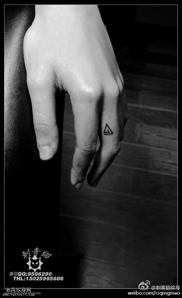 手指上简单的三角纹身图案