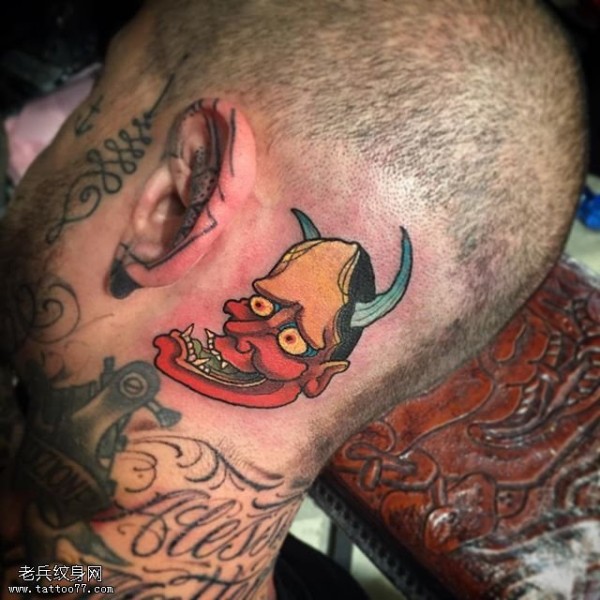 头部的面具般若纹身图案
