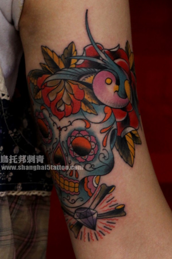 school花臂纹身--一组漂亮的school风格的花臂纹身图案作品