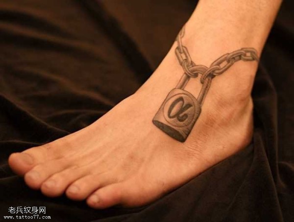 女生脚踝上一把锁纹身图案