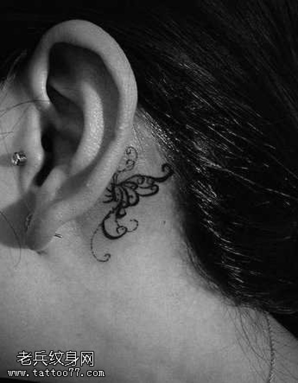 多款女生耳后黑色线条素描文艺小清新小图案纹身图案