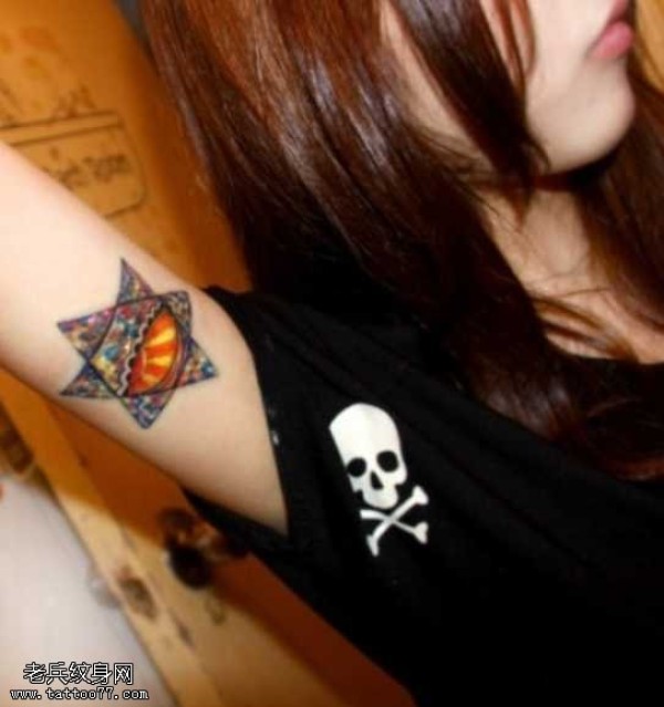 胳膊女生六芒星图腾纹身图案