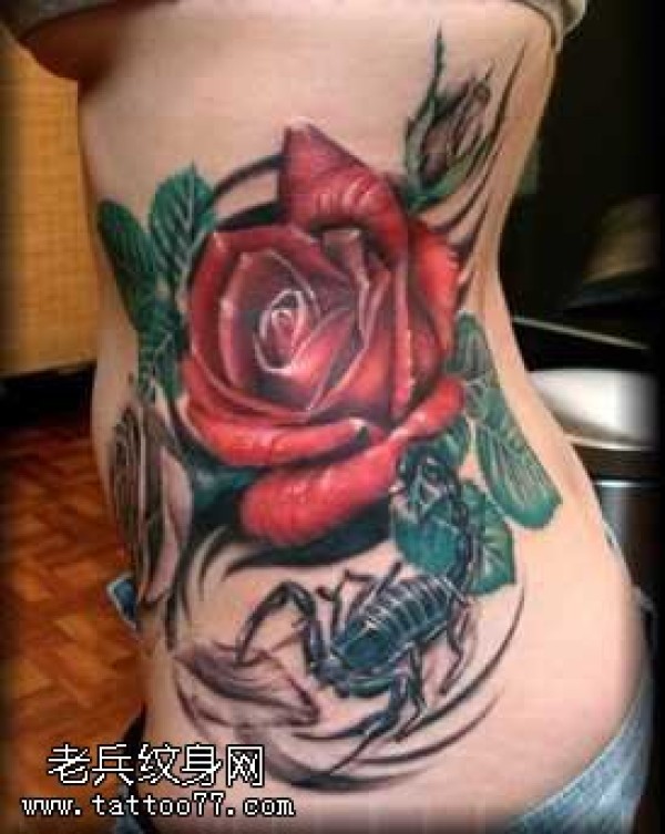 分享一款腰部时尚性感的蝶恋花纹身图案_腰部纹身图案大全_纹身图吧