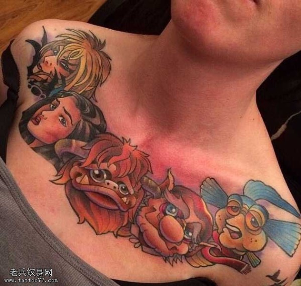 胸部男形象卡通纹身图案