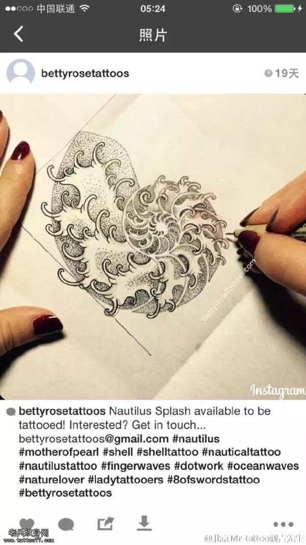 手稿蜗牛浪花纹身图案