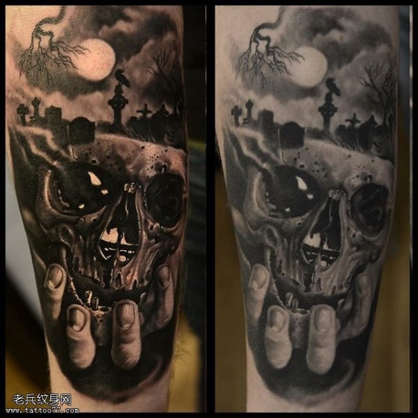 个性手臂悲伤的骷髅纹身图案图案图片_骷髅纹身图案大全_纹身图吧