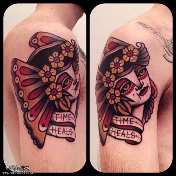 女生肩花纹身_15张女性双肩对称的肩花纹身图案作品图片