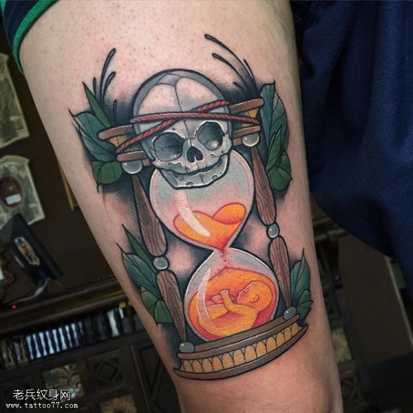 大腿部的沙漏纹身图案