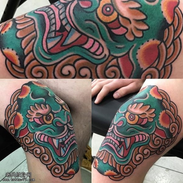 膝盖上的狮子纹身图案