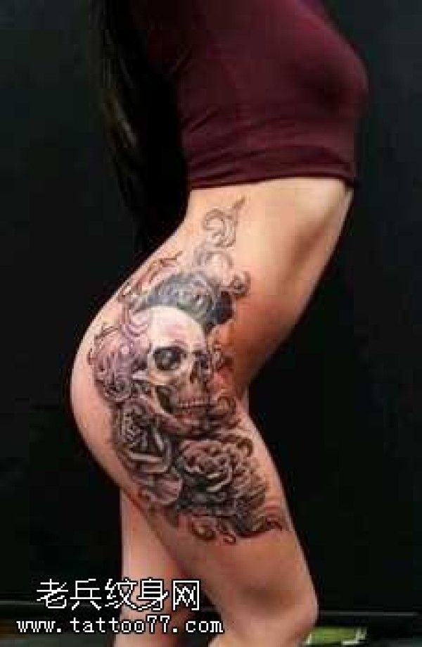 侧腰女骷髅刺青图案图片_骷髅纹身图案大全_纹身图吧