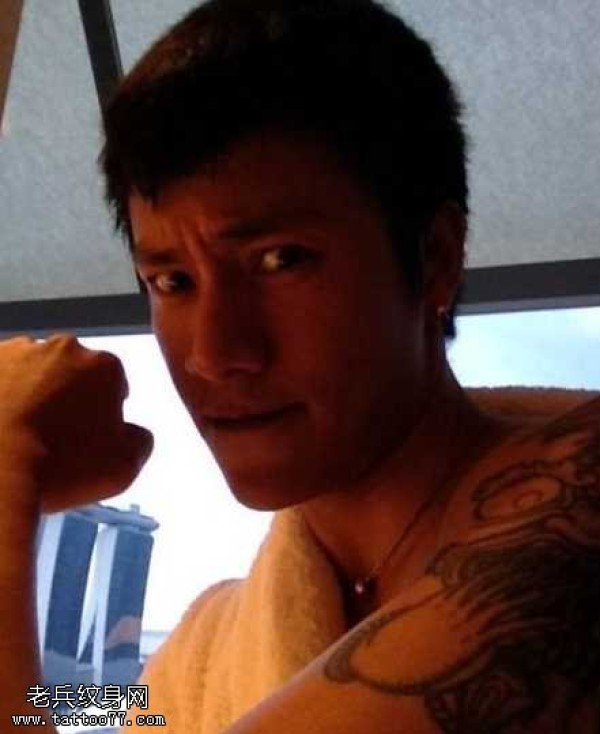 陈坤为庆祝李娜获胜兴奋脱衣豪放露纹身图案