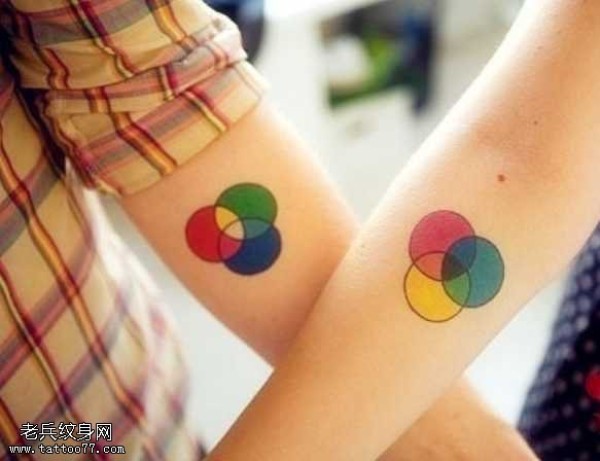 手臂情侣彩色连环圈纹身图案