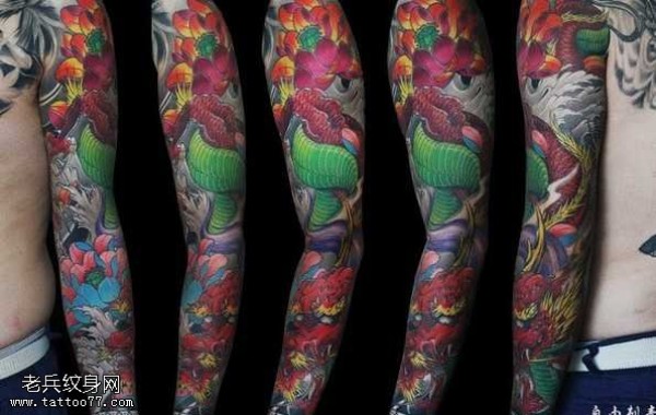 手臂莲花蛇纹身图案_臂部纹身图案大全_纹身图吧