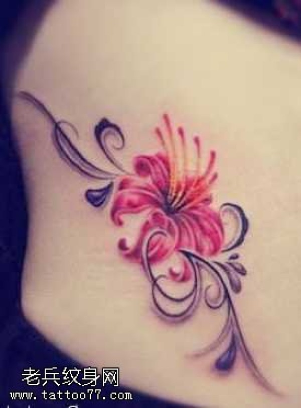 腰部漂亮的彼岸花纹身图案