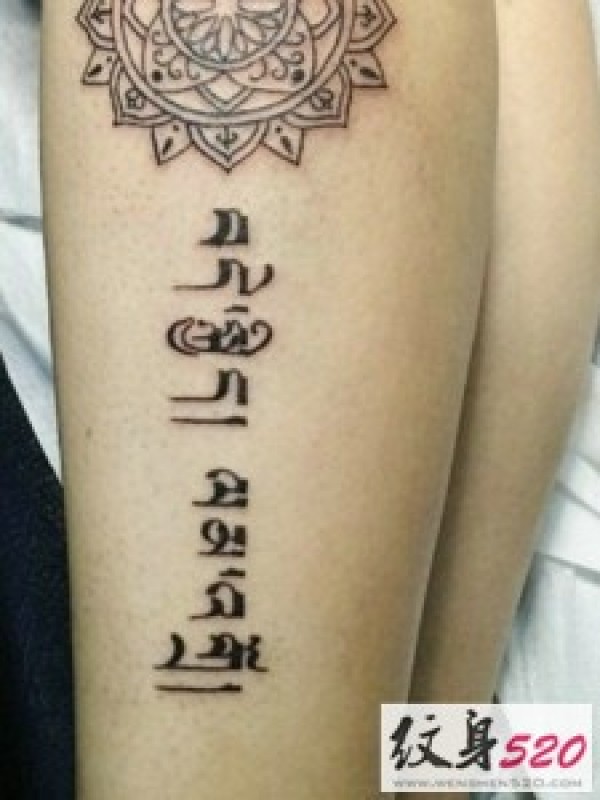 腿部梵文纹身图案