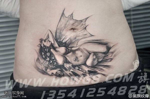 分享一款腰部时尚性感的蝶恋花纹身图案_腰部纹身图案大全_纹身图吧