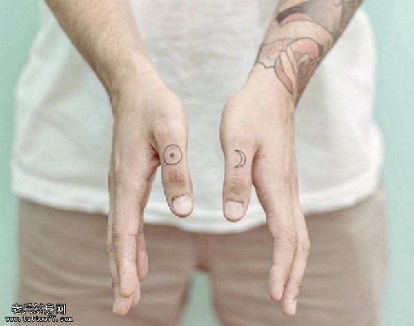 手指上的月亮太阳纹身图案