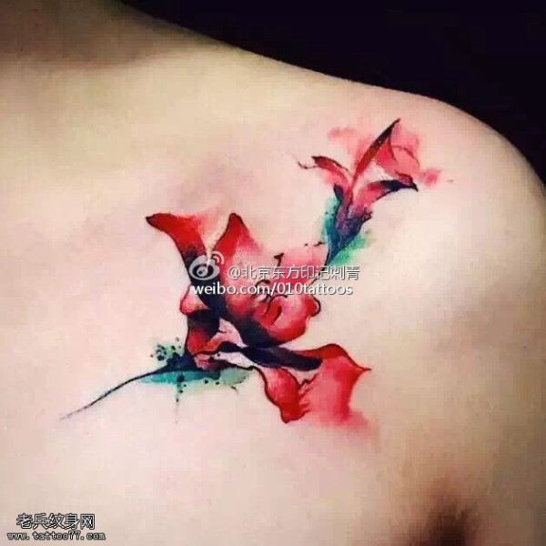 后肩唯美花藤英文图案图片_植物纹身图案大全_纹身图吧